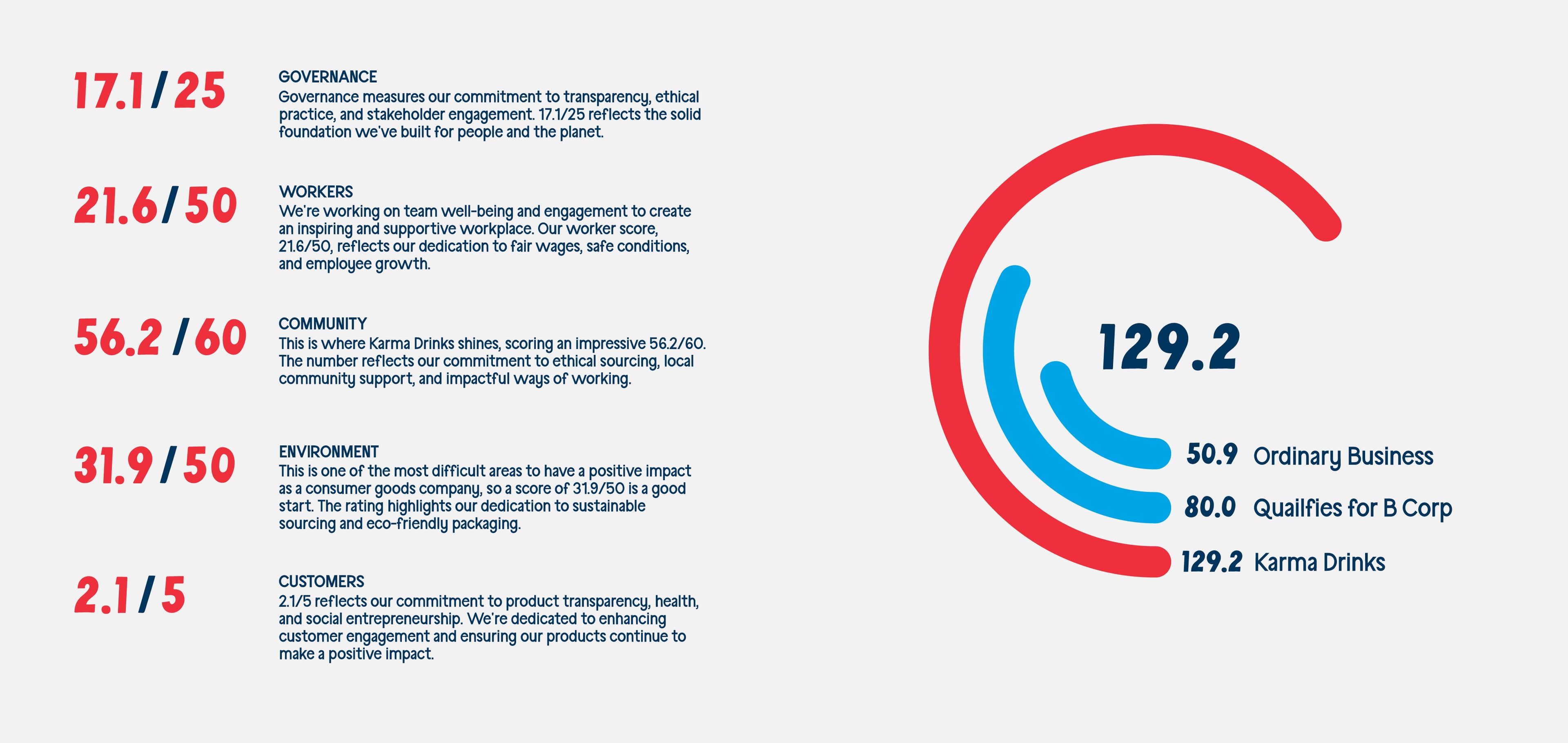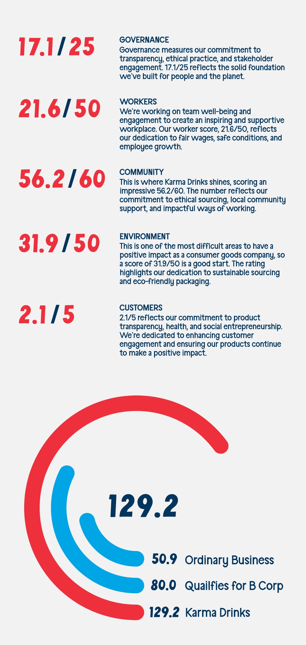 B-Corp is a globally recognised certification that awards businesses that prioritise people and planet, and not just profit. BCorp is another badge we wear to certify the good we do and we’re stoked to be in the Top 5% of B-Corps in the world. We know that the good work doesn’t end there, and we’re in the process of recertifying our B-Corp score and hope to add a few more points to our score thanks to some improvements and changes in recent years. See how we’re currently doing below…
