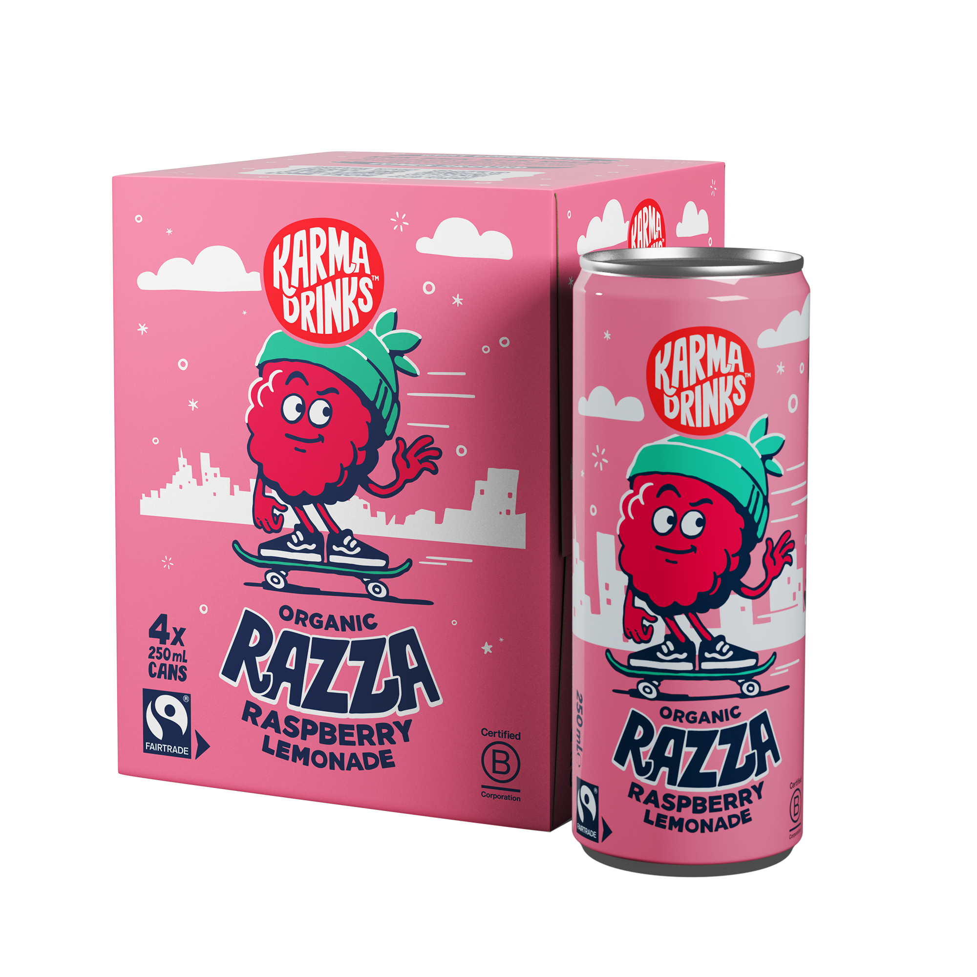 Razza, our organic punky pink raspberry lemonade is fruity, fizzy and Fairtrade, and perfect for a feel-good moment of delicious refreshment.