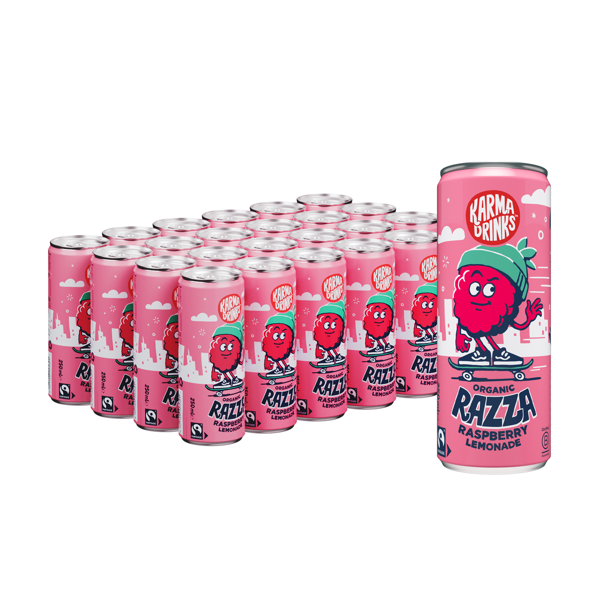 Razza, our organic punky pink raspberry lemonade is fruity, fizzy and Fairtrade, and perfect for a feel-good moment of delicious refreshment.